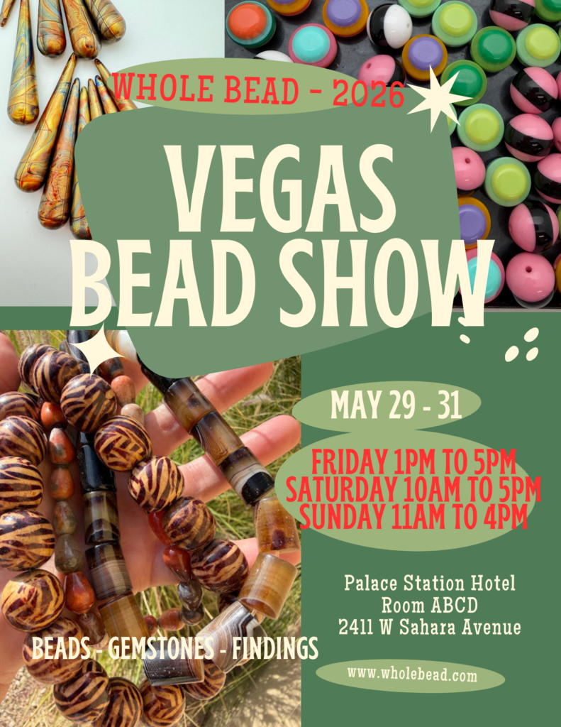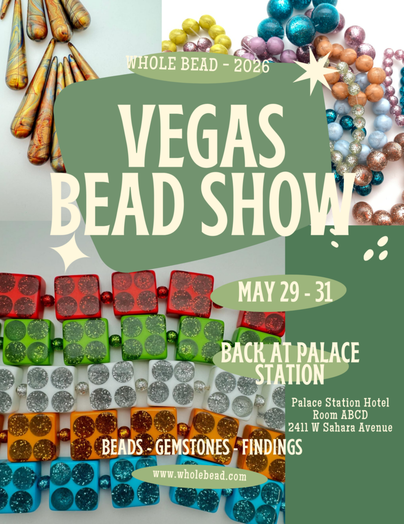 Ava’s Tucson Treasures Special items handpicked by Ava from this year’s Tucson Bead Show Shop Here Upcoming Shows Whole Bead Show Road Trip 2026 Las Vegas Whole Bead ShowMay 29-31, 2026Palace Station Hotel Whole Bead Show Road Trip